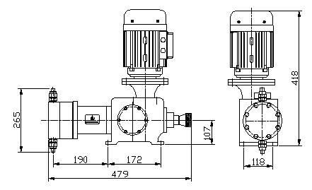 1.計量泵使用前請在齒輪箱內(nèi)加220#媧輪蝸桿油或50#齒輪油至油標(biāo),并在液壓油池內(nèi)加L-HM32-46液壓油至油標(biāo)。