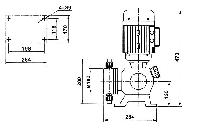 JMZ系列隔膜式計量泵外形安裝尺寸圖: