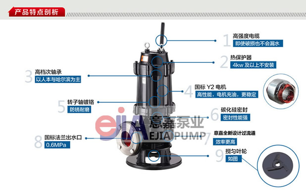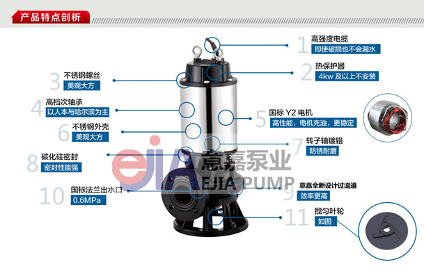 三、JYWQ自動攪勻潛水排污泵產(chǎn)品特點(diǎn):