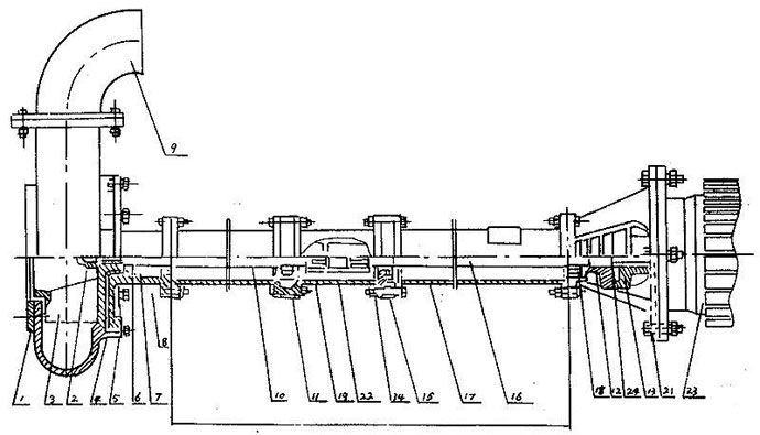 NL型泥漿泵系單級液下泵沿用國內(nèi)先進的工藝技術(shù)研發(fā)生產(chǎn),主要部件有蝸殼、葉輪、泵座、泵殼、支撐筒、電機座、電動機等組成。蝸殼、泵座、電機座、葉輪螺母是生鐵鑄造、耐腐性、耐腐蝕性較好,加工工藝方便。葉輪為三片單園弦彎葉,選用半封閉葉輪,并采用可鍛鑄鐵、所以強度高,耐腐蝕;加工方便,通過性好,效率高。為了減輕重量和減少車削量、泵軸是優(yōu)質(zhì)碳素鋼冷拉園鋼制造。座中裝有四只骨架油封和軸套,防止軸磨損,延長軸的使用壽命。污水泥漿泵可垂直或傾斜使用,占地面積小,蝸殼需埋在工作介質(zhì)中工作,容易啟動,不需弓I水,旋轉(zhuǎn)方向應(yīng)從電機尾部看是順時針方向工作。總機長度備有各種規(guī)格,以便使用單位根據(jù)用途因地制宜地選用。
